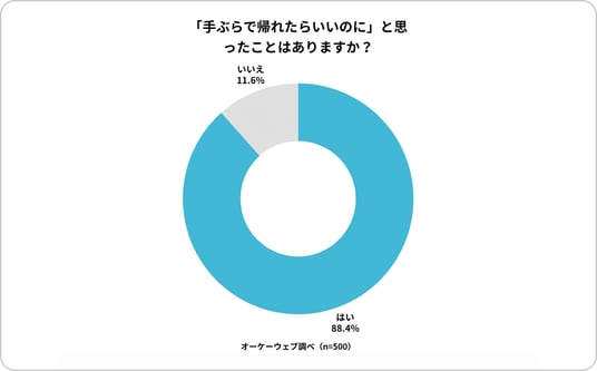 「雨の日や荷物が多い日に、『手ぶらで帰れたらいいのに』と思ったことはありますか?」という質問には、88.4%と圧倒的多数が同意しました。