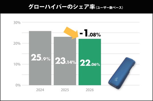反面、2025年に登場した新型デバイス「glo HILO(グローヒーロ)」や「Ploom AURA(プルームオーラ)」が着実にシェアを伸ばしていることが判明しました。