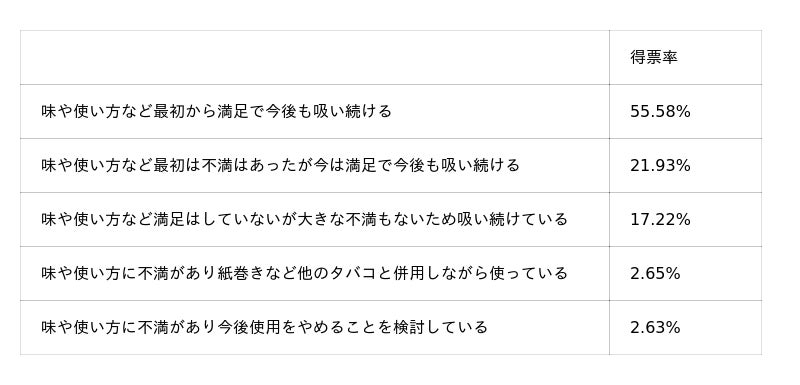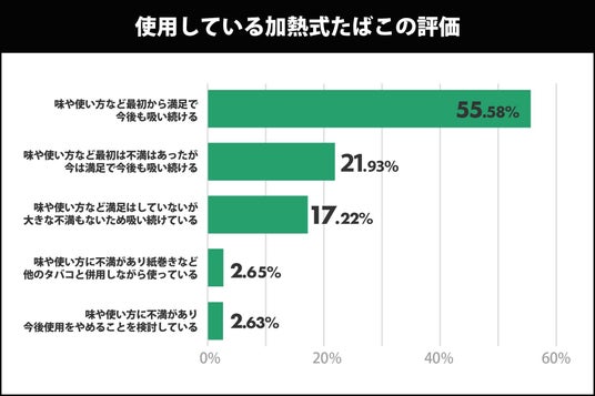 加熱式たばこ利用者の満足度:95%が「継続利用」を意向