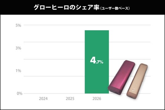 2025年9月全国発売のglo HILO(グローヒーロ)は、発売4ヶ月で4.7%のシェアを獲得。