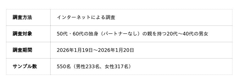 50歳以上限定のマッチングアプリ「Goens(ゴエンズ)」(運営:Goens株式会社/本社:愛知県名古屋市/CEO : 廣澤 和也)は、親の再婚や相続に対する子供世代の本音を明らかにするため、50代・60代の独身の親を持つ20代~40代の男女を対象に意識調査を実施しました。