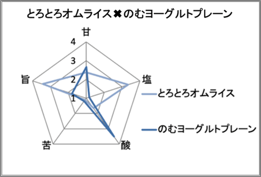 中でも注目したいのが、「玄米茶」と比較して「スーパーサイダーファイバー」のほうが高い相性度を示した点です。酸味や炭酸の刺激がしっかりと感じられる飲料は、濃厚でとろとろとしたオムライスの味わいをすっきりと引き締め、後味のキレを高める効果があることが分かりました。味覚センサーAIの数値分析から、定番とは異なる飲料との組み合わせでも、オムライスの味わいをより楽しめる可能性が示されています。
