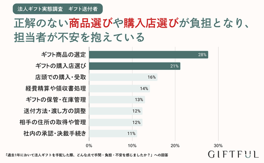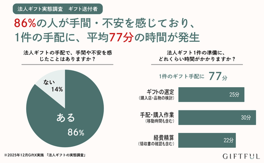 - 86%の担当者が法人ギフトの手配に手間や不安を感じている