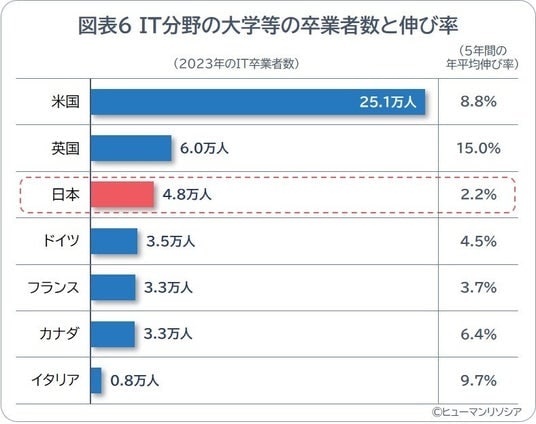 ・一方で、人材供給源となるIT分野の卒業者数の伸びは平均2.2%で、G7最下位