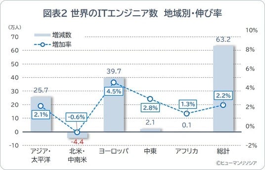 ・世界のITエンジニア数は、前年比約2.2%増の3,023.2万人に