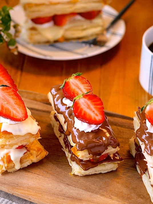 驚くほど簡単に作れる(ハート)切って焼くだけ苺チョコミルフィーユ by♪♪maron♪♪/青木ゆかりさん