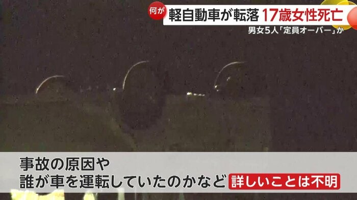 福岡・北九州市の県道で10代の男女5人が乗った軽自動車が河川敷に転落し、17歳の少女が病院に搬送されたが、死亡が確認された。車は定員オーバーの状態だったという。