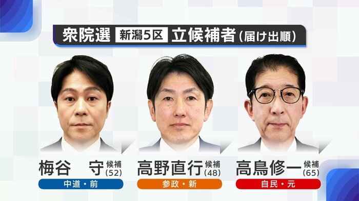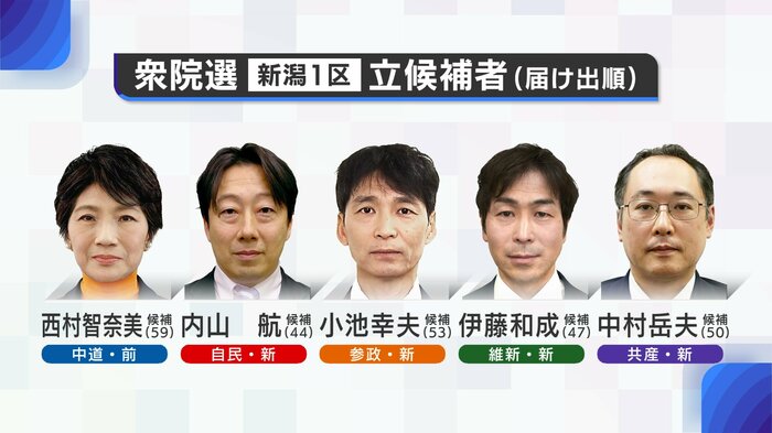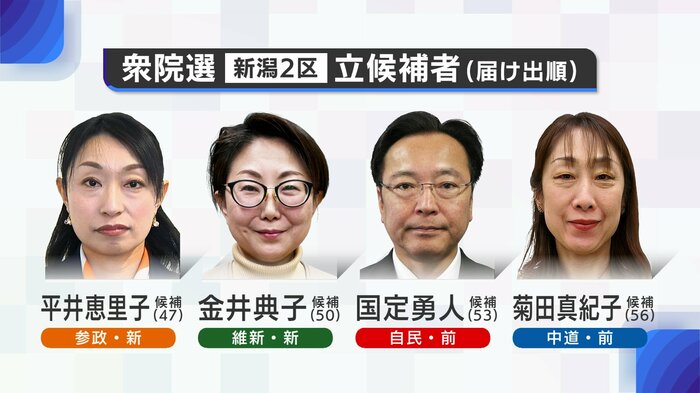 前回の衆院選では、立憲民主党が全勝した新潟県。高市首相の高い支持率を追い風に自民党が巻き返すか、維新・国民・共産も新人を擁立。参政は全選挙区で候補者を擁立し、比例の掘り起こしも図る。