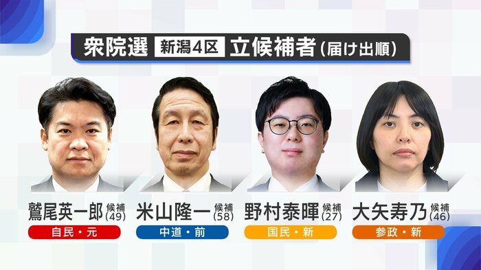 新潟4区 自民・中道・国民・参政の4人が立候補