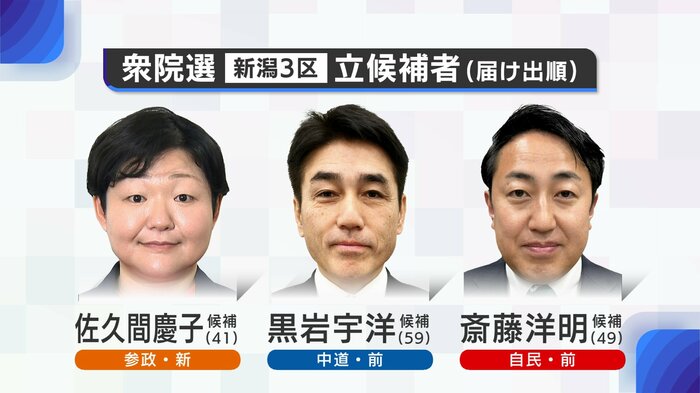新潟3区 前職の6度目の対決に参政割って入り三つ巴に