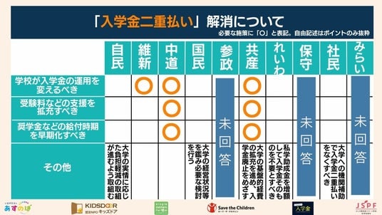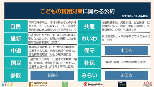 なお、未回答の政党の回答については、回答があれば、順次公表する予定です。