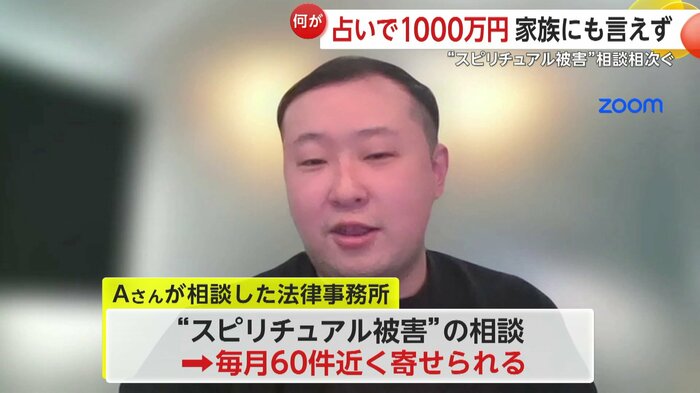 Aさんが相談した弁護士事務所には、同様の“スピリチュアル被害”の相談が毎月60件近く寄せられているという。