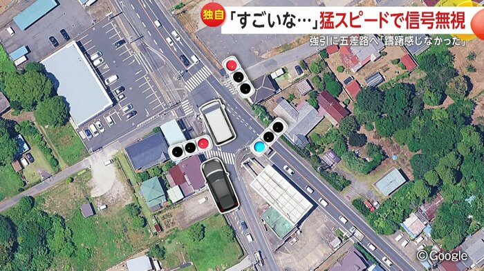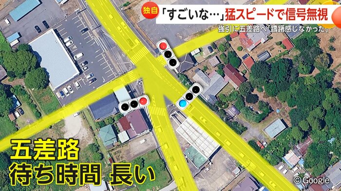 車は赤信号で止まる気配もなく、そのまま進んだ。現場は複雑な五差路になっていて、信号待ちの時間が長い場所だという。