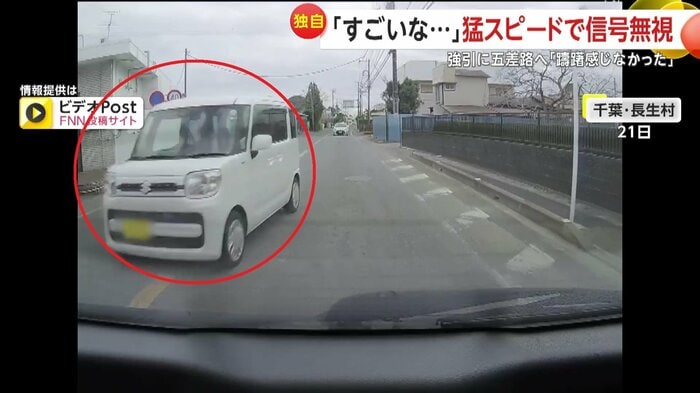危険な信号無視は、21日、千葉・長生村でも起きていた。