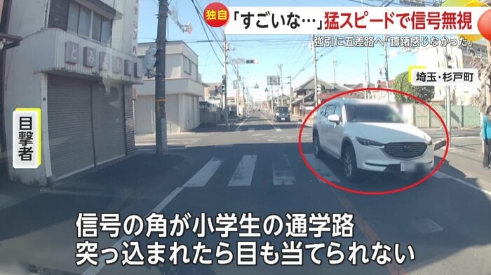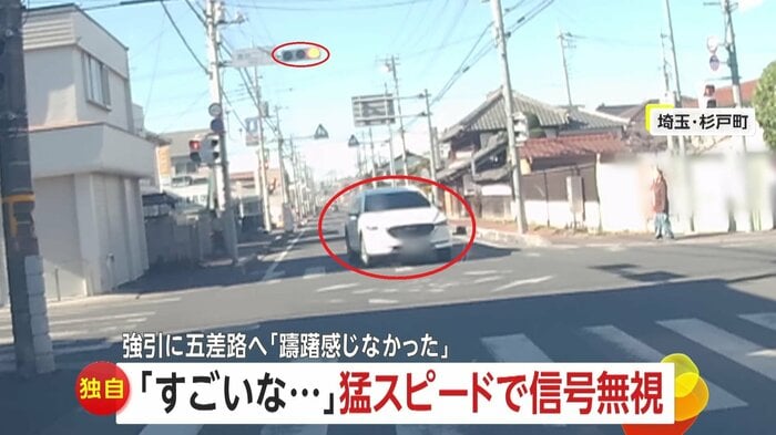 23日、埼玉・杉戸町でカメラが捉えたのは、住宅街を猛スピードで駆け抜ける危険な信号無視の瞬間だ。