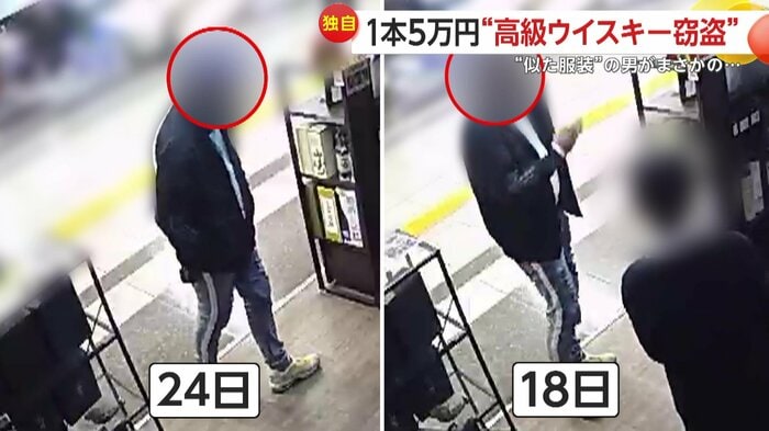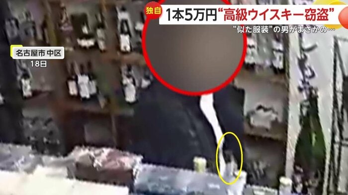 愛知・名古屋市の酒店で18日、高額商品を狙った窃盗の瞬間がカメラに捉えられた。