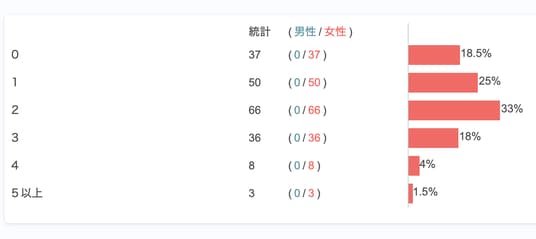 全員が1~4個の範囲に収まっており、極端に多い・少ないケースは確認されませんでした。