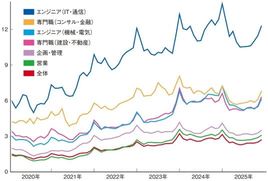 (出所)パーソルキャリア「doda 転職求人倍率(2025年11月)」