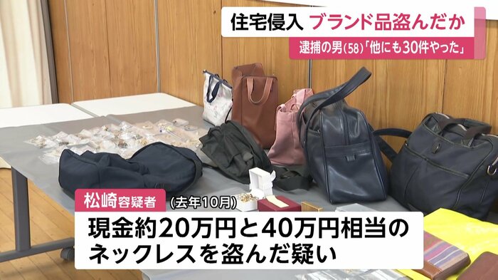 松崎容疑者は盗んだ現金などを生活費や遊興費にあてていて、調べに対し「他にも30件ほどやった」と容疑を認めているという。