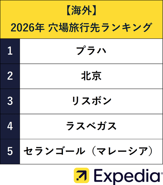 世界の大手総合旅行ブランドの一つであるエクスペディアは、2026年における「注目のお得旅行先ランキング【海外・国内】」と「穴場旅行先ランキング【海外・国内】」を発表します。2026年は有給休暇を取得すると最大8~9連休以上を4回(ゴールデンウィーク、お盆、シルバーウィーク、年末年始)作れる可能性があり、祝日が土曜日にかぶることが1度もないことから、旅行に絶好の一年となります。