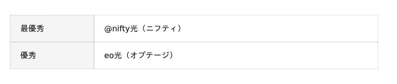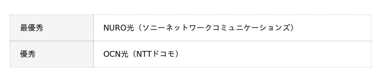 地域別では電力系事業者のサービスが高い支持を得ていますが、東海地域では「キャッチネットワーク」が最優秀を獲得しました。また各社がしのぎを削る10Gサービスですが、昨年の「eo光」にかわり「@nifty光(ニフティ)」が最も満足度の高いサービスとなりました。なおプロバイダ部門では、今年も「ASAHIネット(朝日ネット)」が1位を獲得しました。