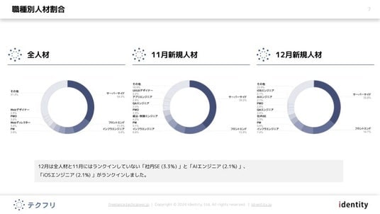 12月は全人材と11月にはランクインしていない「社内SE (3.3%) 」と「AIエンジニア (2.1%) 」、