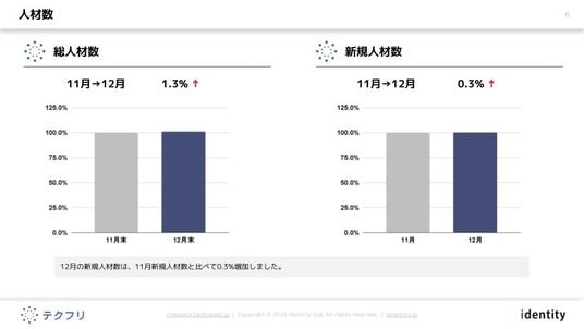 12月の新規人材数は、11月新規人材数と比べて0.3%増加しました。