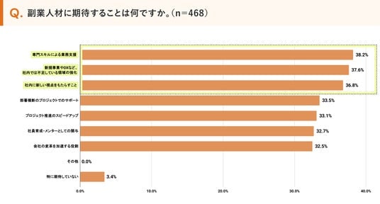 ・人事、DXなどの専門領域で、副業人材による業務支援が人材不足を解消