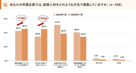 ・副業人材の募集チャネルは「民間サービス」「知人紹介」が中心に 自治体・金融機関経由は減少