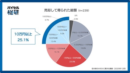 ・売却した人のうち、売却総額が「10万円以上」となったのは25.1%
