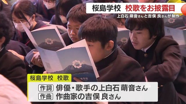(動画で見る▶上白石萌音さん作詞・吉俣良さん作曲 桜島学校の校歌がお披露目「歌詞がグッときた」)