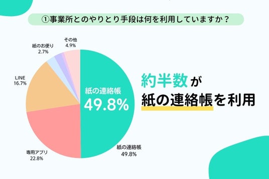 49.8%が紙の連絡帳を利用する一方で22.8%が専用アプリを利用