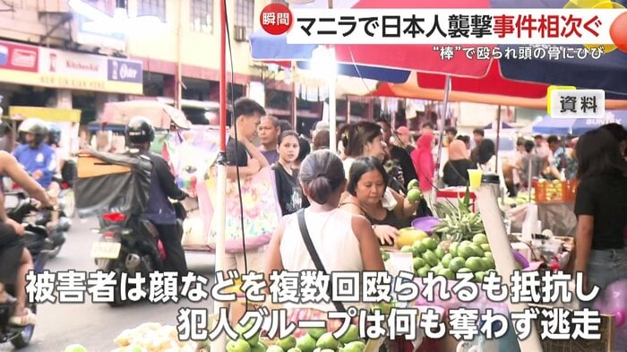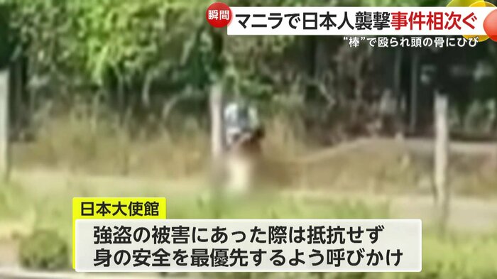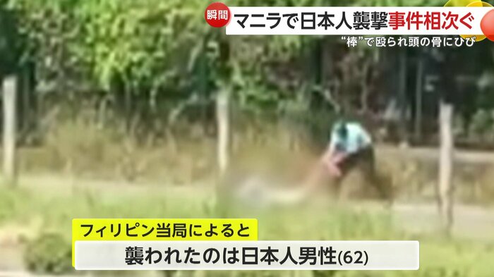 フィリピン当局によると、襲われたのは62歳の日本人男性で、棒のようなもので頭を殴られ、骨にひびが入るなどの大けがをしたという。
