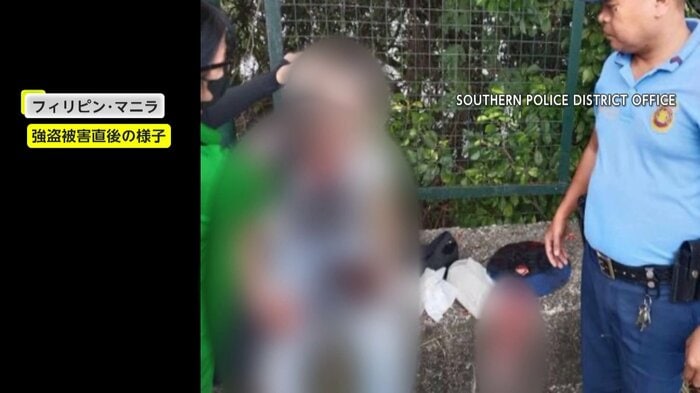 フィリピンの首都マニラで、強盗被害に遭った直後の様子だ。