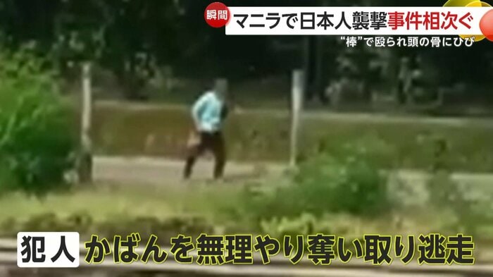 フィリピンの首都マニラで、多くの車が行き交う道路の歩道で日本人男性が殴られ、かばんを無理矢理奪い取られる事件が発生。
