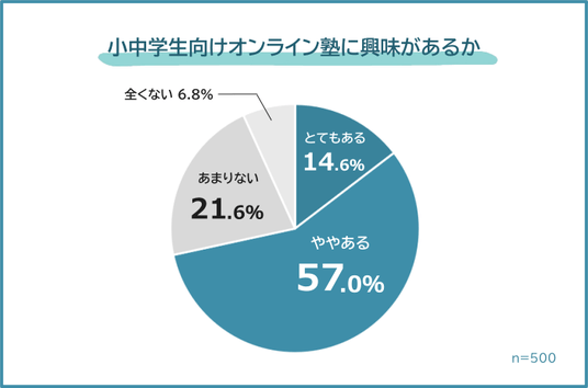 ・小中学生向けオンライン塾に興味がある親は71.6%