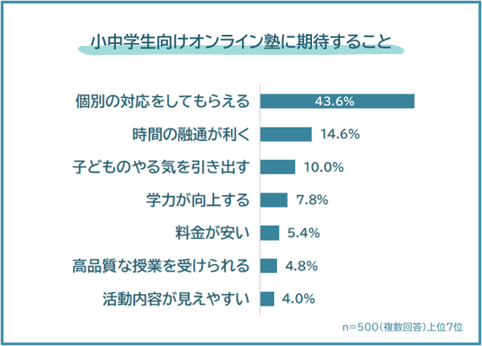小中学生向けオンライン塾に期待することは「個別の対応をしてもらえる」