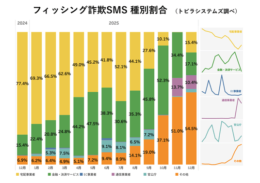 特殊詐欺やフィッシング詐欺の対策サービスを提供するトビラシステムズ株式会社(本社:愛知県名古屋市、代表取締役社長:明田 篤、証券コード:4441、以下「トビラシステムズ」)は、2025年12月に当社調査で確認された詐欺電話や詐欺SMSに関する独自調査レポートを公開します。(調査期間:2025年12月1日~12月31日)