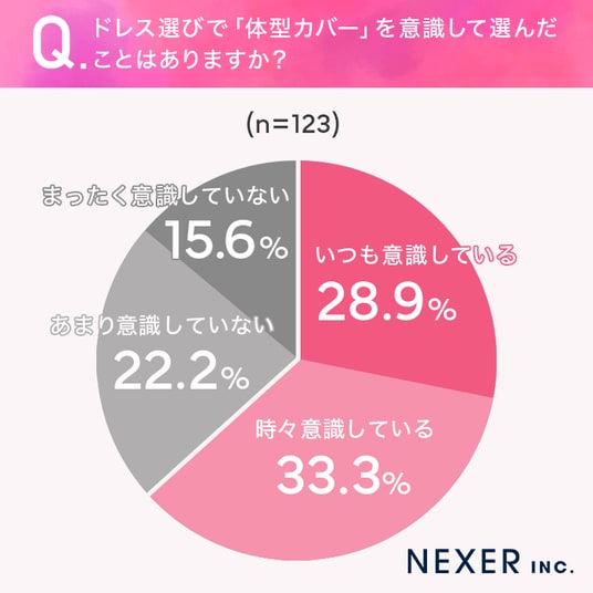 続いて、ドレス選びで「体型カバー」を意識して選んだことがあるかを聞いてみました。