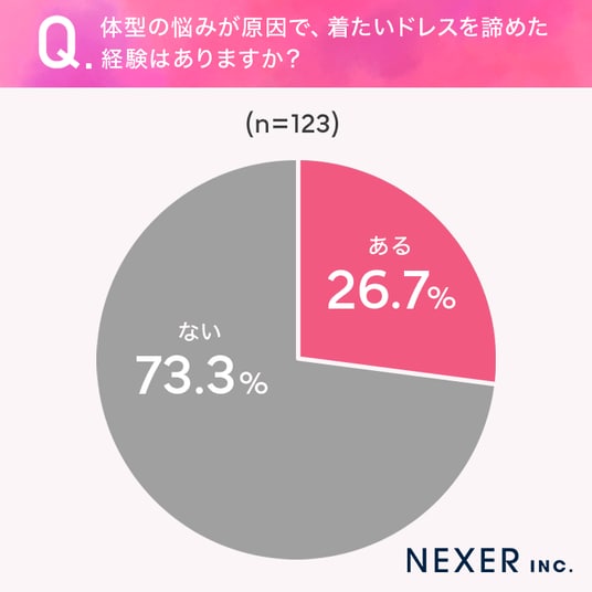 ■26.7%が体型の悩みで「着たいドレスを諦めた経験がある」