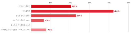 「そう感じた(家族や同居人にバレくいと感じた)」との回答が42.3%で最も多く、次に「とてもそう感じた(家族や同居人にとてもバレくいと感じた)」との回答が20.5%となり、回答者の6割以上がレバクリからの配送が「家族や同居人にバレにくい」と感じていることがわかった。