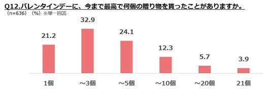 ・バレンタインにもらった数の最高記録は「~3個」が3割強で最多。