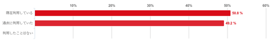 「現在利用している」と回答した人が50.8%で、「過去に利用していた」との回答の49.2%を若干上回った。