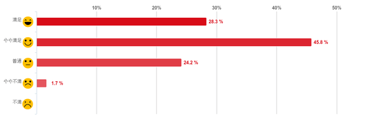 「やや満足」と回答した人が45.8%で約5割となり最も多く、「非常に満足」との回答と合わせると7割以上の人が満足していることがわかった。反対に、「やや不満」と回答した人は1.7%と僅かで、「不満」と回答した人はいなかった。