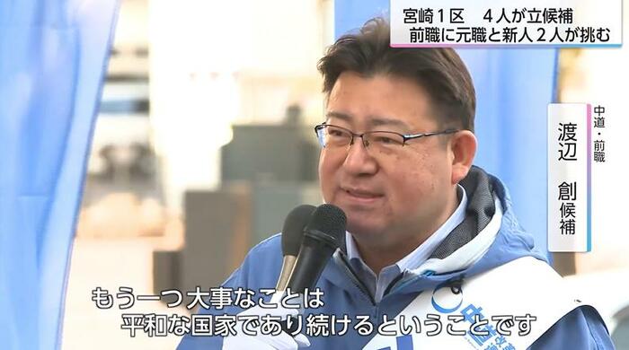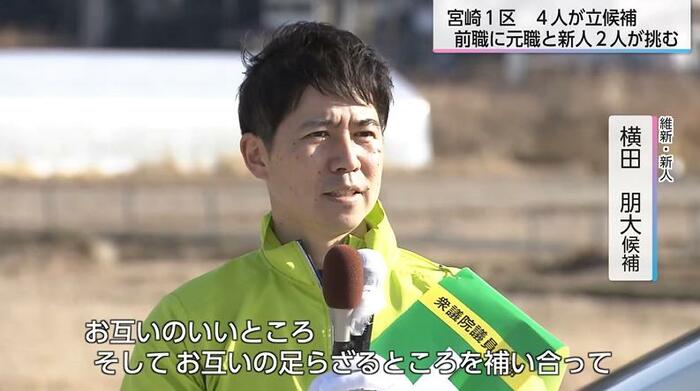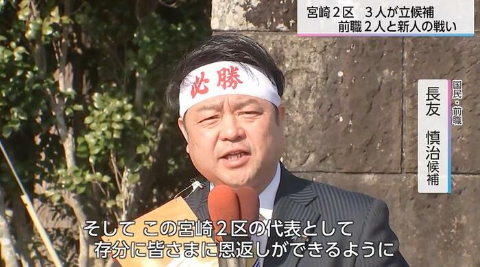 宮崎1区には、4人が立候補した。中道の前職に自民の元職と維新、参政の新人が挑む。