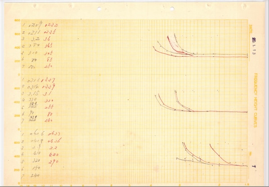 三河地震が発生した1945年1月13日午前3時36分(日本時間)の直前における電離層電子数密度の増加を示す手書きのイオノグラムがあります。これは神奈川県平塚(海軍)が行った垂直観測によるもので、海軍方式のため周波数(横軸)は右から左へ読む必要があります。