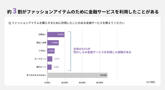 ・約3割(31%)がファッションアイテムのために金融サービスを利用したことがあると回答