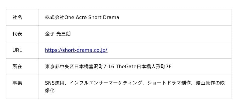 また、株式会社OneAcreShortDramaは広告としてのショートドラマの制作でもマーケットインに制作をして効果を出しており、作品型でも広告型でもショートドラマでの成果を出しています。