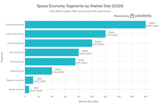 ● 各セグメント別のCAGR差(衛星通信9~10%、軌道上サービス15%超)が示唆する産業シフト
