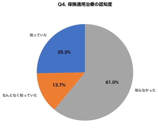 設問:美容皮膚科で保険適用の治療が受けられることをご存知でしたか?